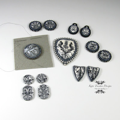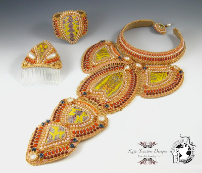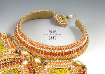 Rich, vibrant texture and color was a great starting point. When it came to design, there was a lot to consider. I wanted to add a new skill and the bead-embroidered collar on a brass blank was something I've been meaning to try for a couple of years. I stitched down row-after-row, layer-upon-layer to create the final richly textured collar.